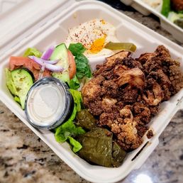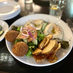 I ate lunch here with a friend two days ago. I had a $12 lunch special: shish tawook sandwich with fries and iced mint tea; my friend had a falafel plate ($14) and iced tea ($3). I enjoyed everything; the spiced fries were especially good. The atmosphere is nice; it was not crowded or noisy. Service was fine.